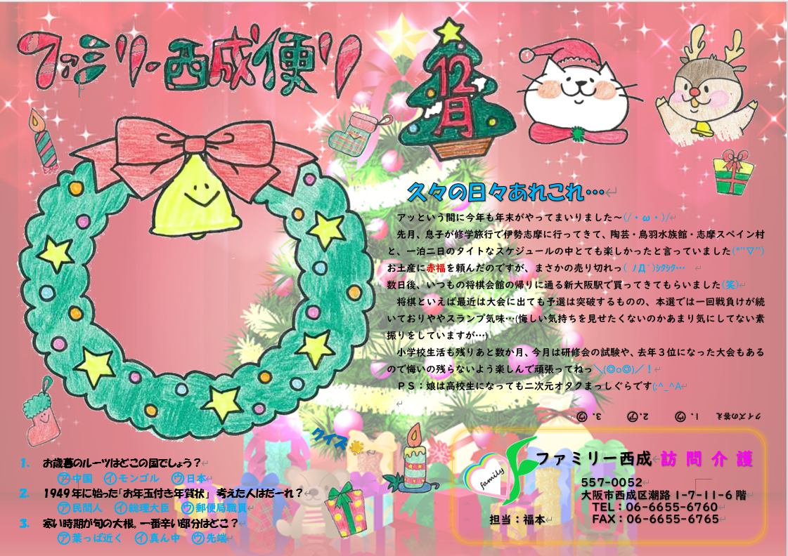 介護だより12月号を発行しました(❁´◡`❁)💓