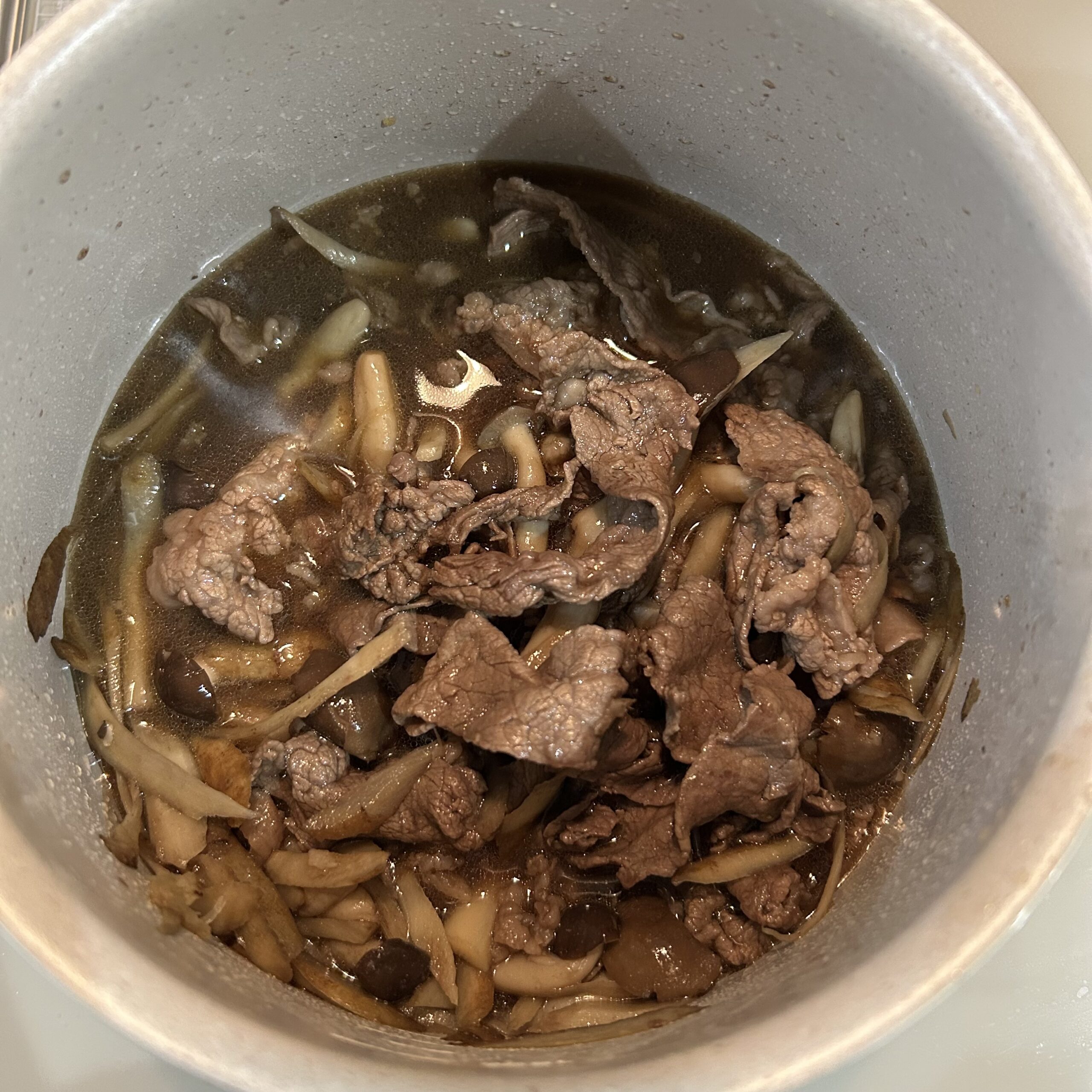 3.しめじがしんなりしてきたら、牛肉を加えさらに炒める。お肉の色が変わったら★を入れる。