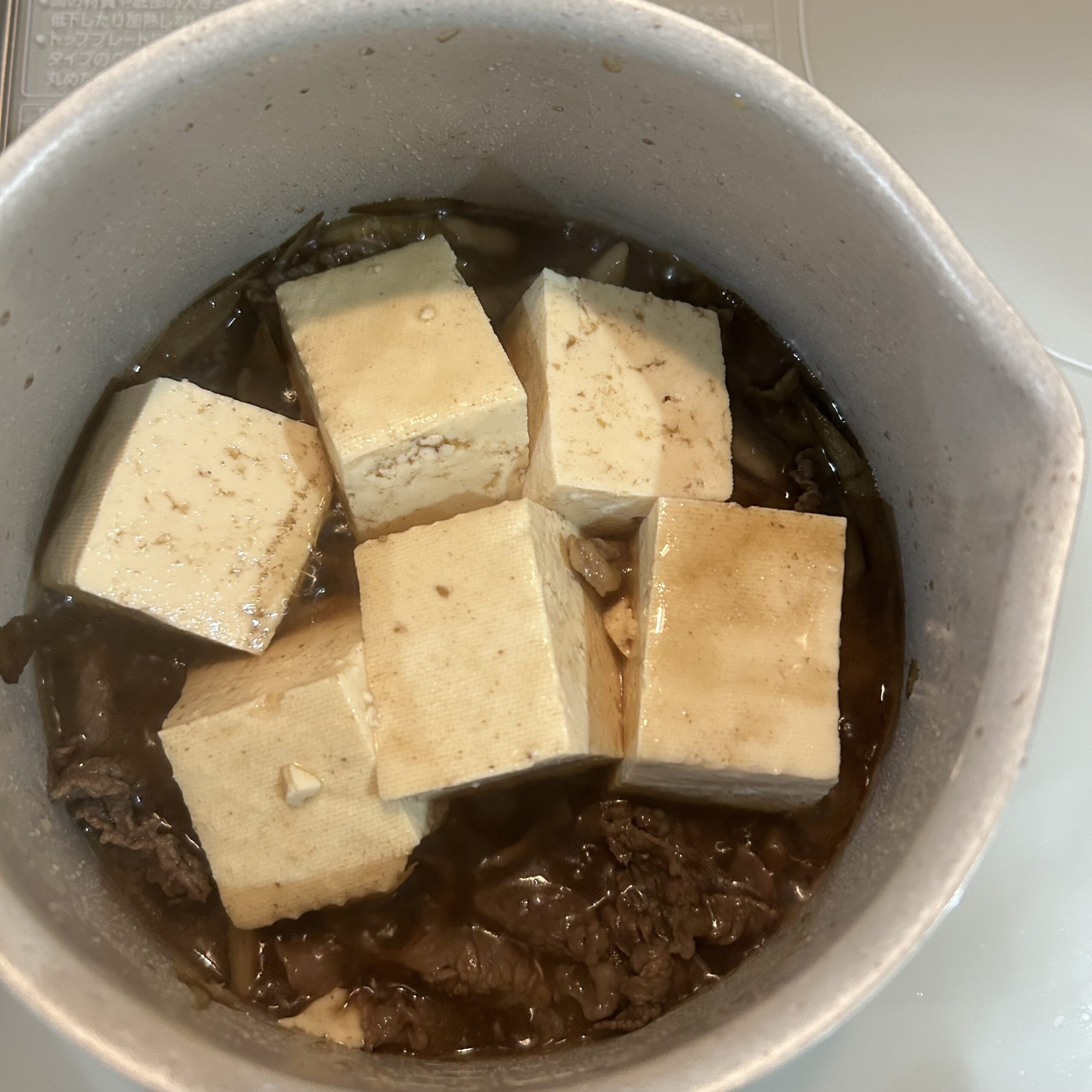 4.煮立ってきたら、豆腐を加え、時々煮汁を回しかけながら5分ほど煮る。
