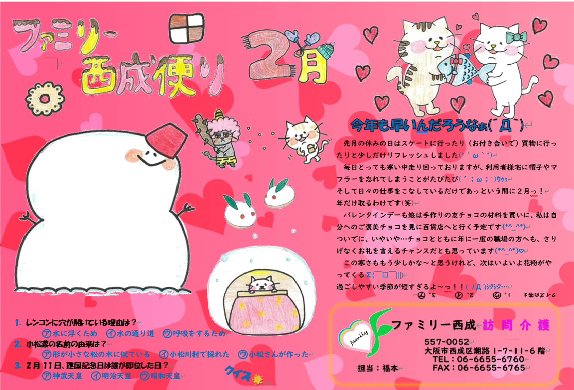 介護だより2月号を発行しました(❁´◡`❁)💓